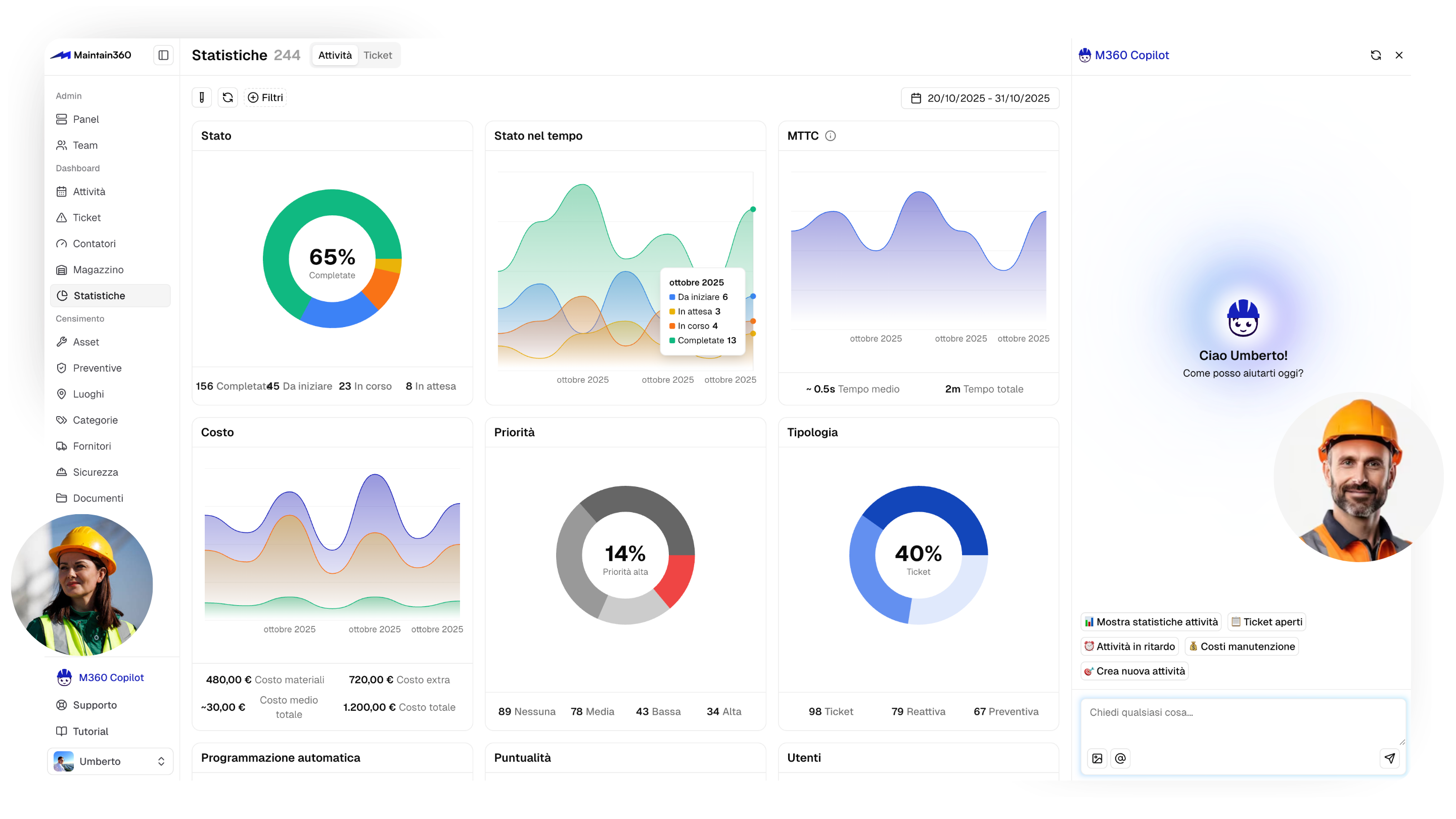Dashboard e report per monitorare asset, pianificare interventi e prendere decisioni rapide. Tutto sotto controllo, senza perdere tempo, con strumenti chiari e pratici per gestire la manutenzione.